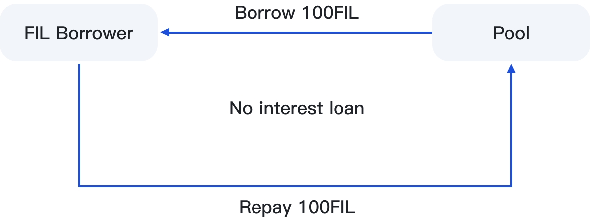 The borrower does not need to pay any interest. For example, if the user borrows 100 FIL, only 100 FIL needs to be repaid when returning.